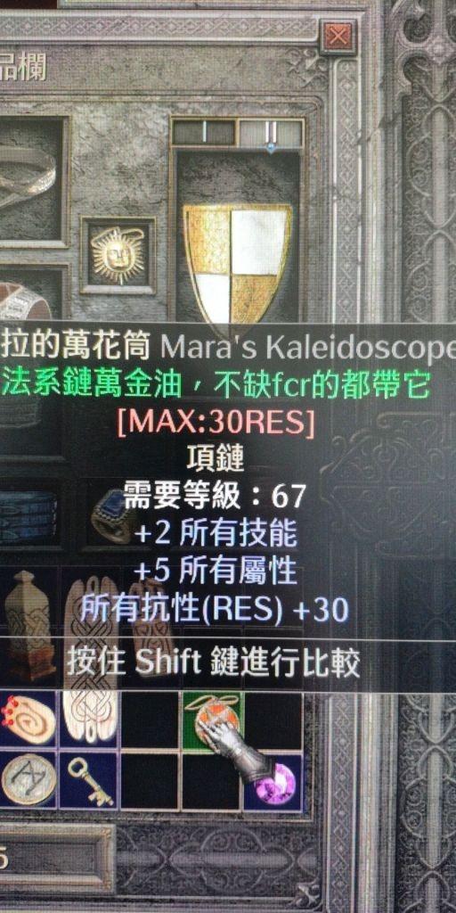 +20 全属性,所有抗性 + 15%,是开荒期最通用的项链,几乎所有流派都能用到。