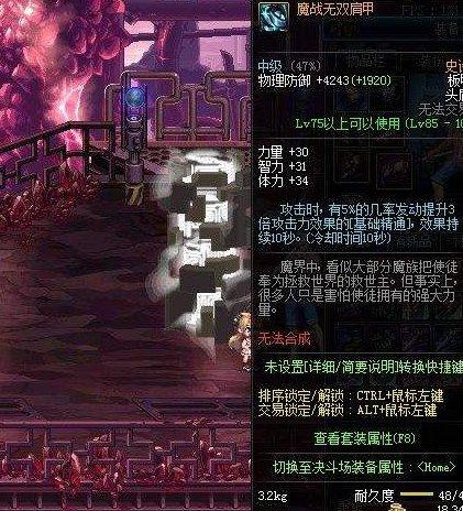 级史诗肩甲,以技能冷却时间大幅减少和高基础属性著称,搭配魔战套可实现技能循环极快的续航玩法