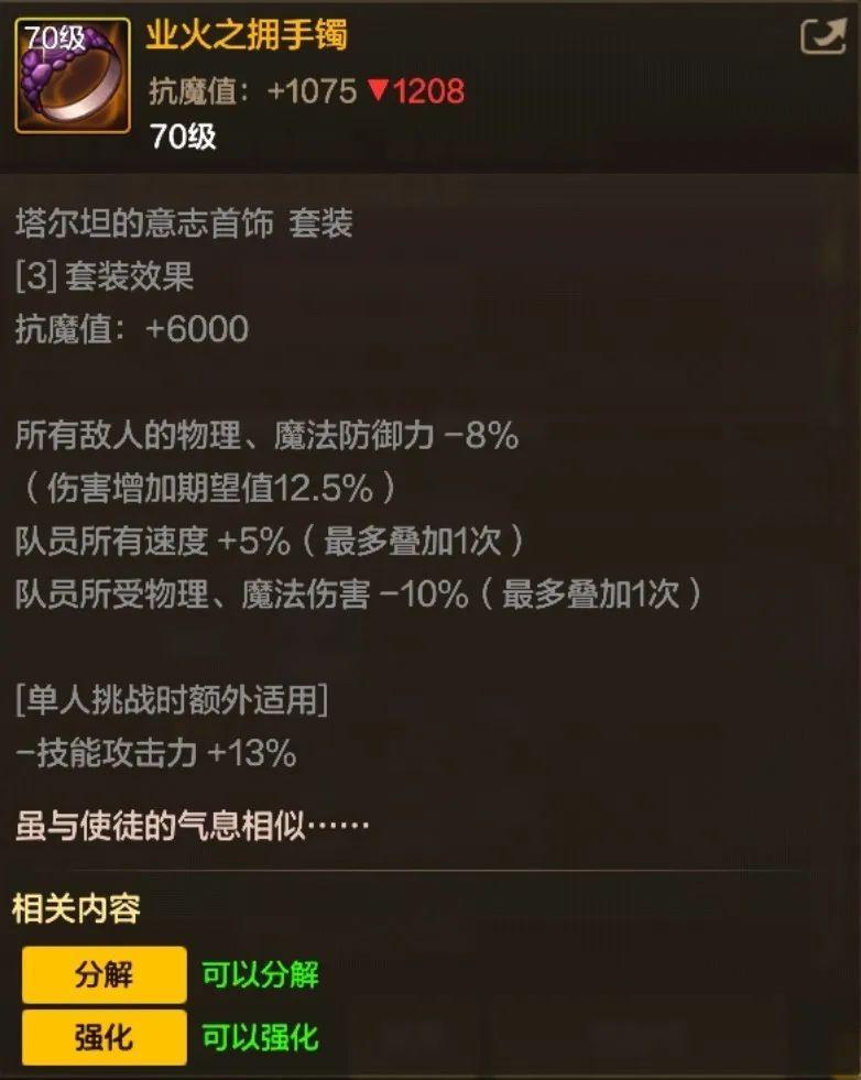 业火之拥手镯(85 级史诗项链)85 版本最强首饰之一,属性为攻击时重置技能 CD,+15% 技能攻击力,是依赖技能爆发的职业(如武神、元素)的核心搭配;出处为发电站深渊。