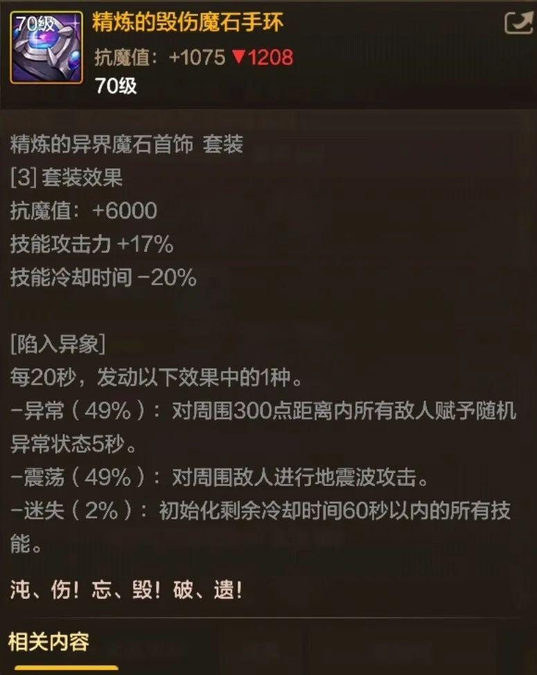星空的旅行者 - 项链(90 级史诗项链)与恍惚之境并列的 90 级首饰,属性为增加属强与附加伤害,三速提升稳定,适合缺少恍惚套时过渡;出处为魔界深渊。